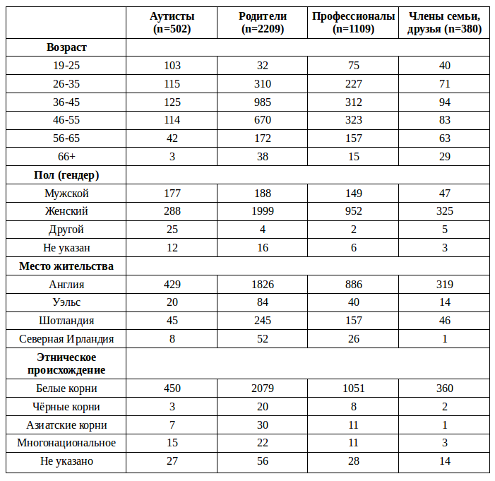 - 380 членов семьи (не родители) и друзей аутичных людей.